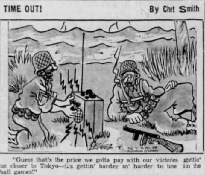 In 1942, the wartime scrap effort costs the war-bound Giants a game.