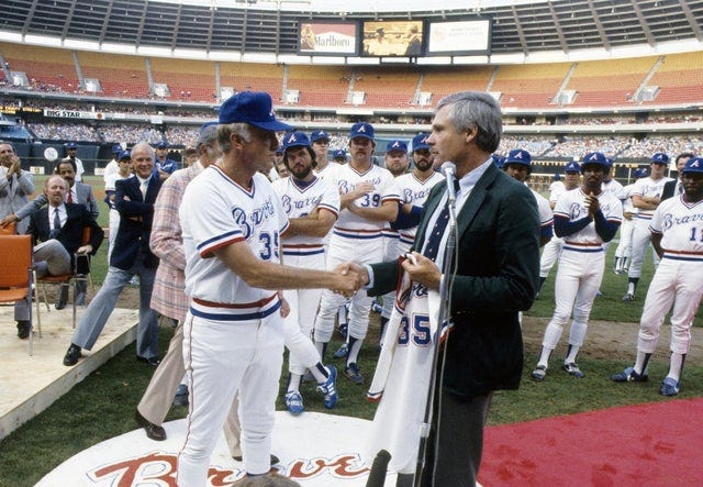 For the second night running, the crew walked off the field as jeers rained down, making once again for the Braves’ dugout and passing within earshot of Ted Turner’s personal box to share some pointed words on their way.
